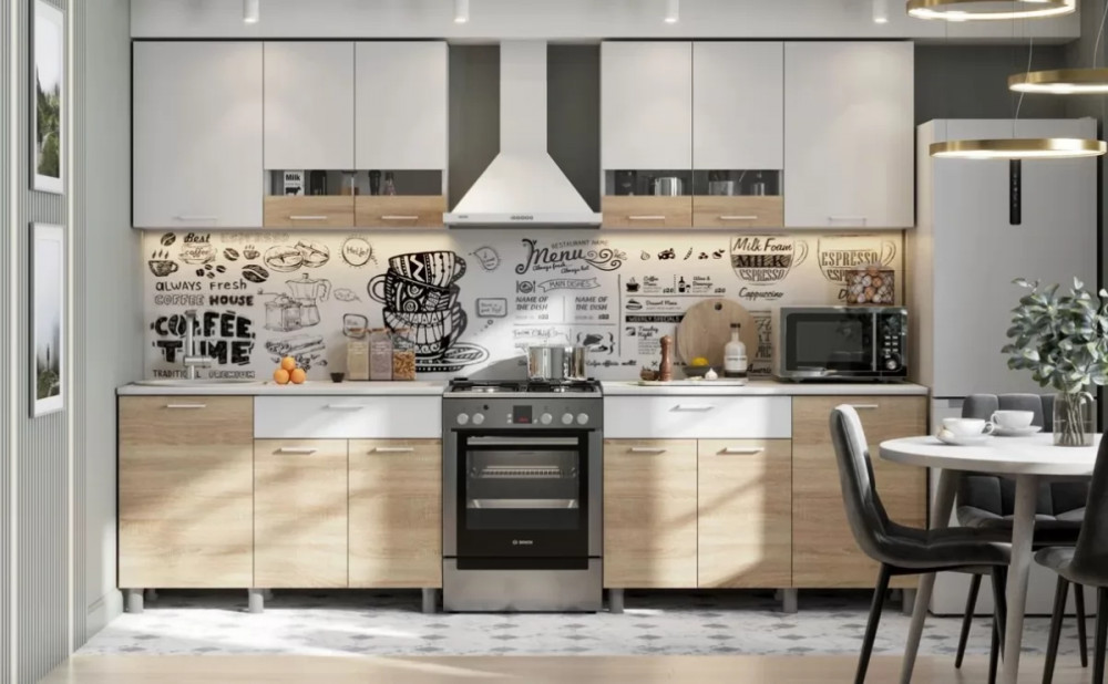 Кухонный гарнитур «Тиана» длиной 180 см Дуб Крафт золотой, Белый супермат