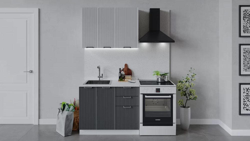 Кухонный гарнитур «Кимберли» длиной 150 см Белый, Сноу, Титан