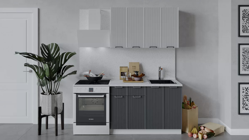 Кухонный прямой гарнитур арт.13, 3000 мм, Лайн/Обсидиан/Пикрит