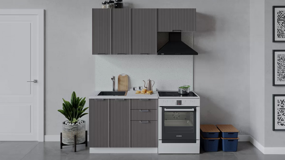 Кухонный гарнитур «Кимберли» длиной 150 см Белый, Сноу, Титан