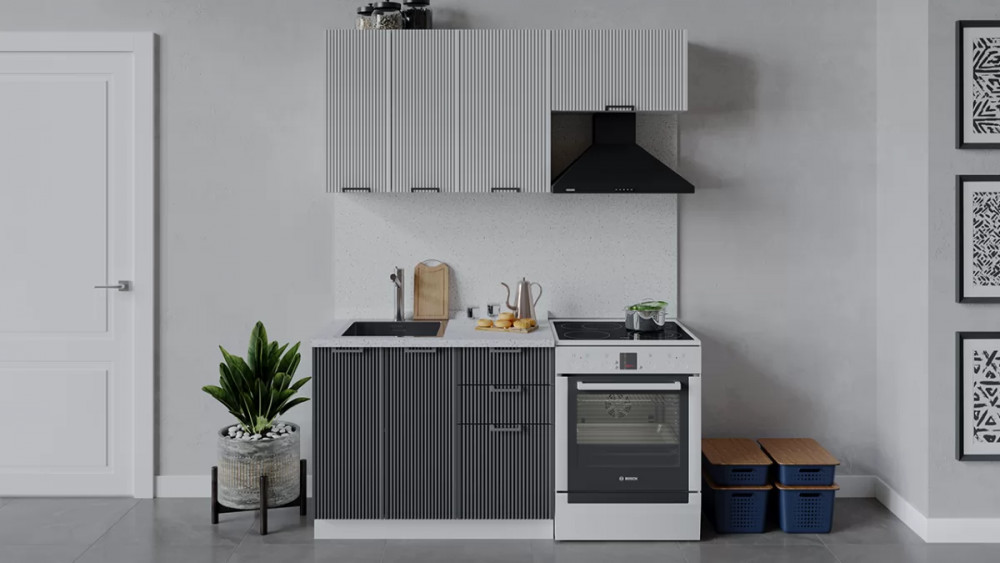 Кухонный гарнитур «Кимберли» длиной 150 см Белый, Сноу, Титан