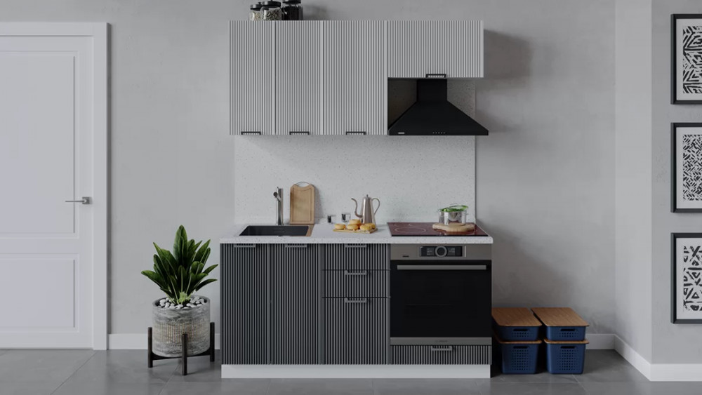 Кухонный гарнитур «Кимберли» длиной 150 см Белый, Сноу, Титан
