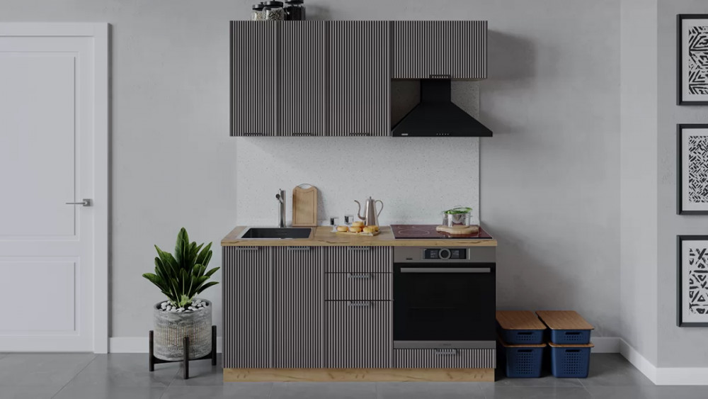 Кухонный гарнитур «Кимберли» длиной 150 см Дуб Крафт золотой, Титан