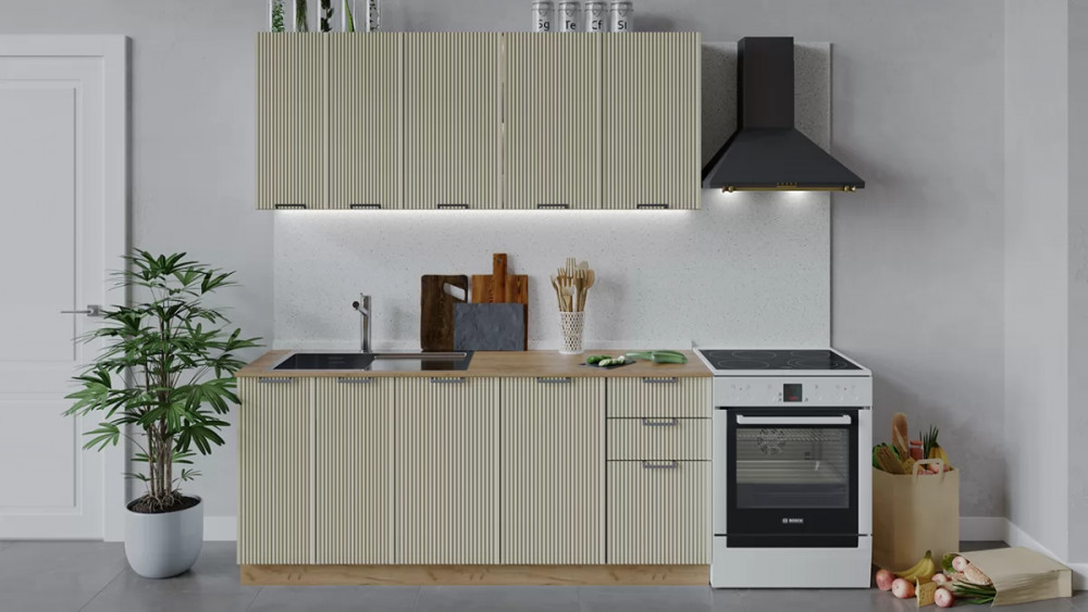 Кухонный гарнитур «Кимберли» длиной 200 см со шкафом НБ Белый, Крем