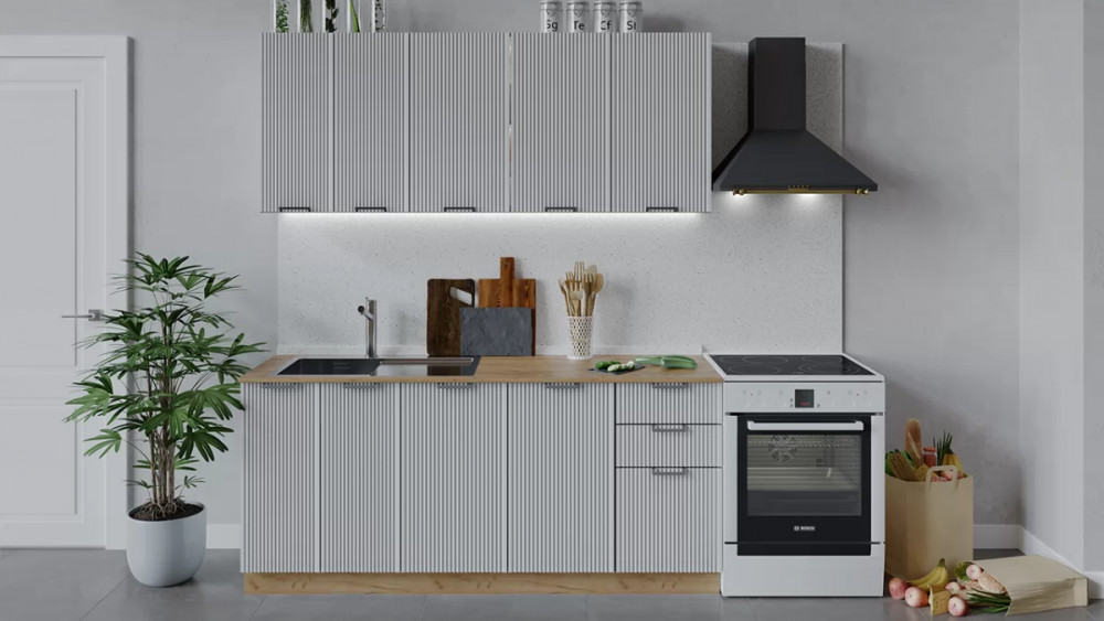 Кухонный гарнитур «Кимберли» длиной 200 см Белый, Сноу, Титан