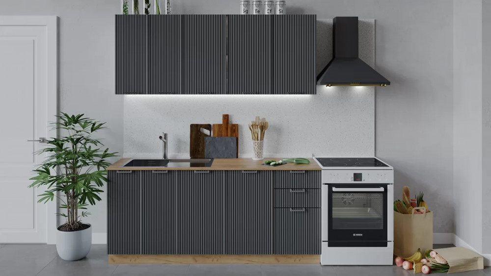 Кухонный гарнитур «Кимберли» длиной 200 см со шкафом НБ Белый, Титан