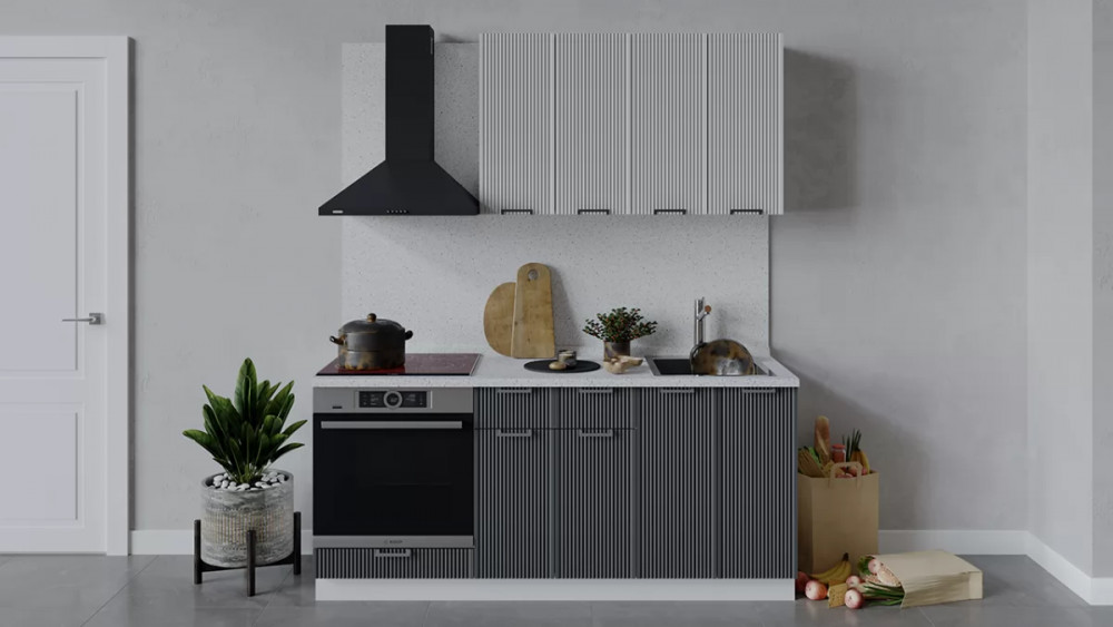 Кухонный гарнитур «Кимберли» длиной 180 см со шкафом НБ Белый, Титан