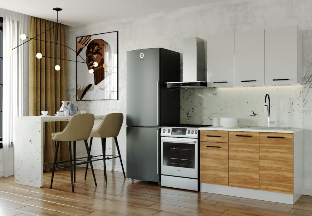Кухонный прямой гарнитур арт.42, 2400 мм, Лайн/Тальк/Пикрит