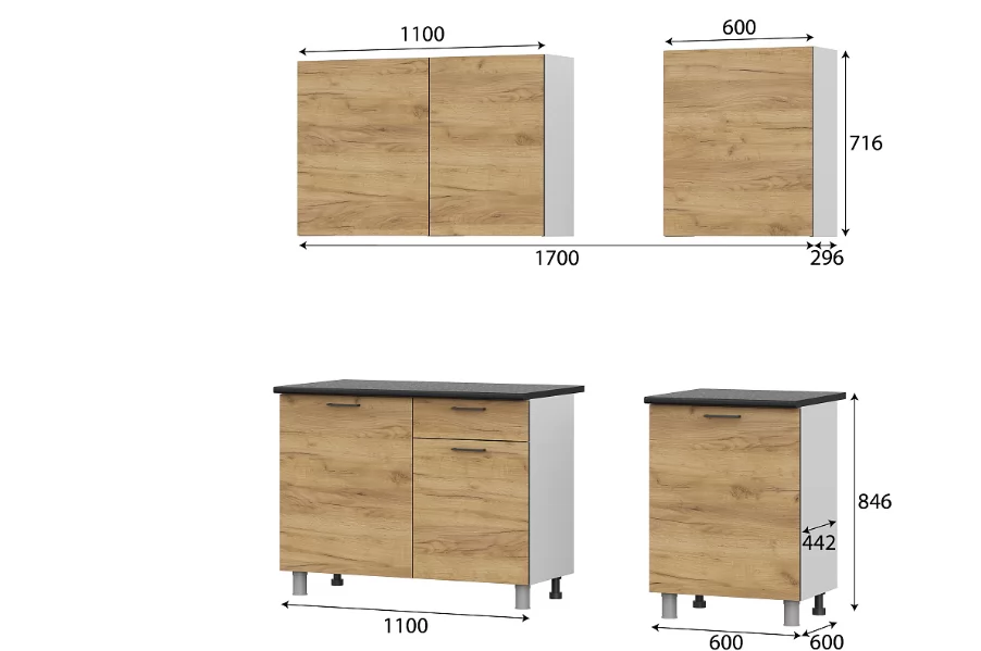 Кухонный гарнитур Лаванда 1700 без столешницы Дуб Золотой