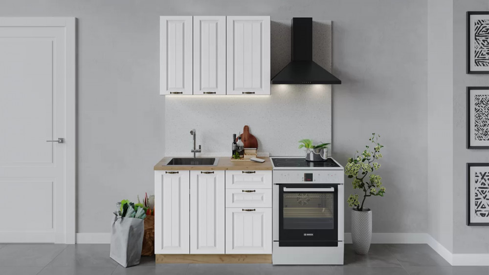 Кухонный гарнитур «Бьянка» длиной 150 см Дуб крафт золотой/Дуб белый/Дуб серый