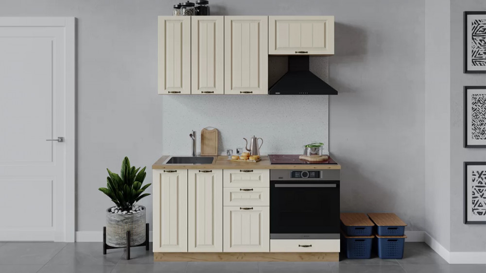 Кухонный гарнитур «Лина» длиной 150 см Дуб крафт золотой/Крем