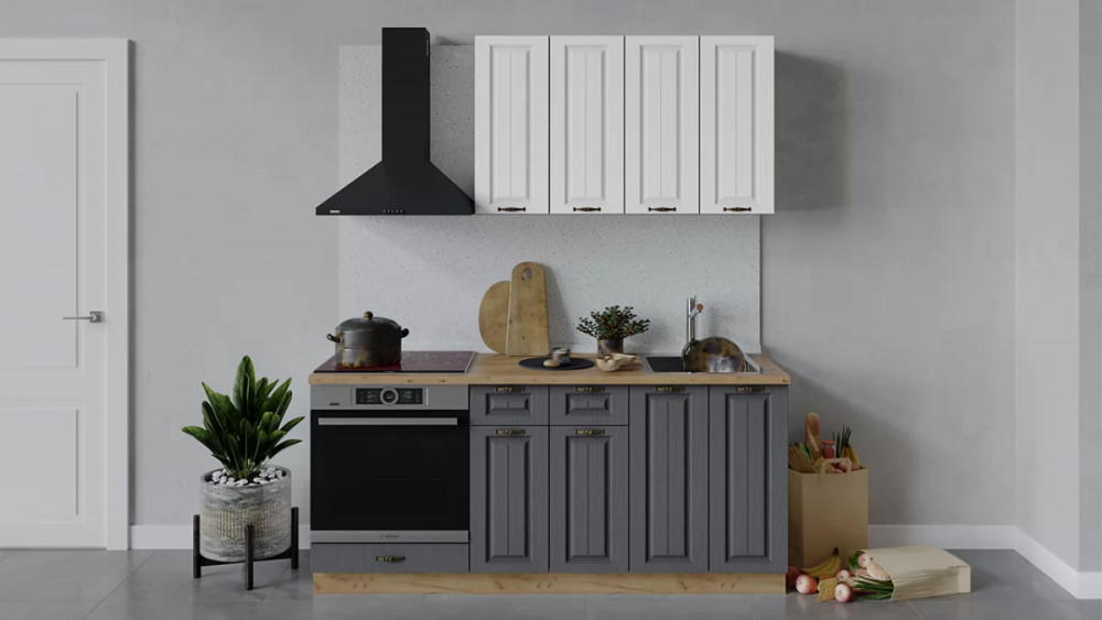 Кухонный гарнитур «Лина» длиной 200 см Дуб крафт золотой/Графит