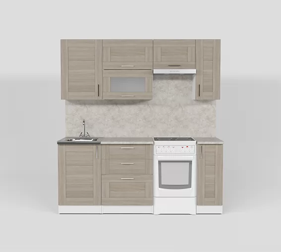Кухонный гарнитур Лира ультра из ЛДСП в модном цвете "Квадро шимо светлый" впишется в современный дизайн интерьера. Подойдет как для частного дома, так и для небольшой квартиры. Напольные и подвесные шкафы позволят разместить всю кухонную утварь. Гарнитур состоит из набора шкафов, которые органично комбинируются между собой. Ящики, полки, навесные шкафы, тумбы и пеналы можно менять местами, создавая практичное рабочее пространство.