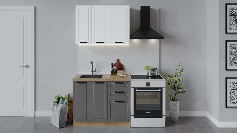Кухонный гарнитур «Лорас» длиной 160 см Дуб крафт золотой/Холст белый/Холст вулкан