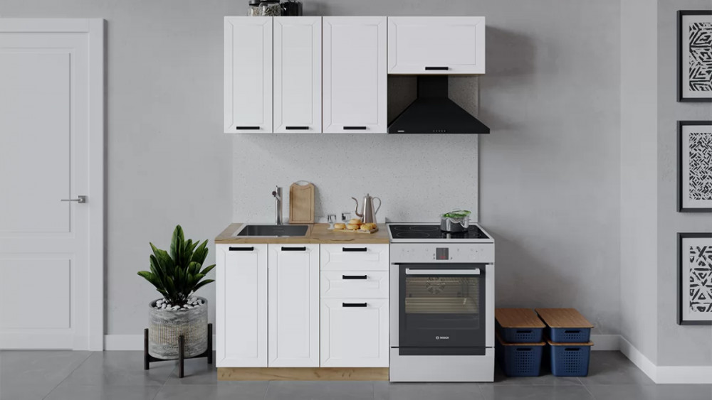 Кухонный гарнитур «Лорас» длиной 150 см Дуб крафт золотой/Холст белый