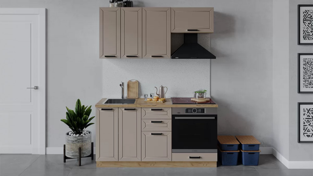 Кухонный гарнитур «Лорас» длиной 150 см Дуб крафт золотой/Холст брюле/Холст латте