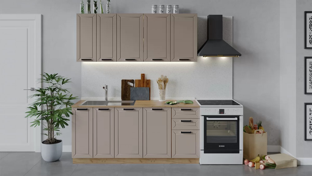 Кухонный гарнитур «Лорас» длиной 200 см Дуб крафт золотой/Холст брюле/Холст латте