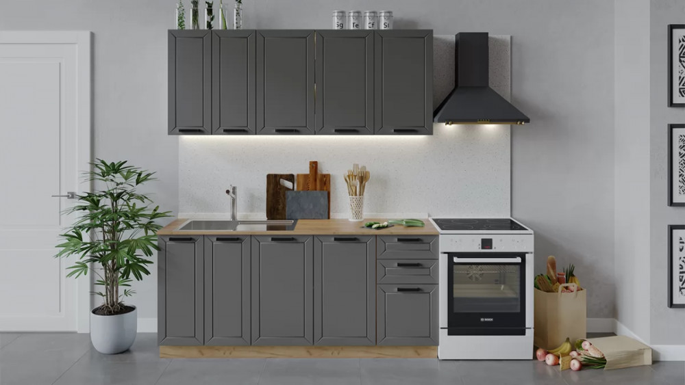 Кухонный гарнитур «Белладжио» длиной 180 см Дуб Крафт золотой, Софт графит