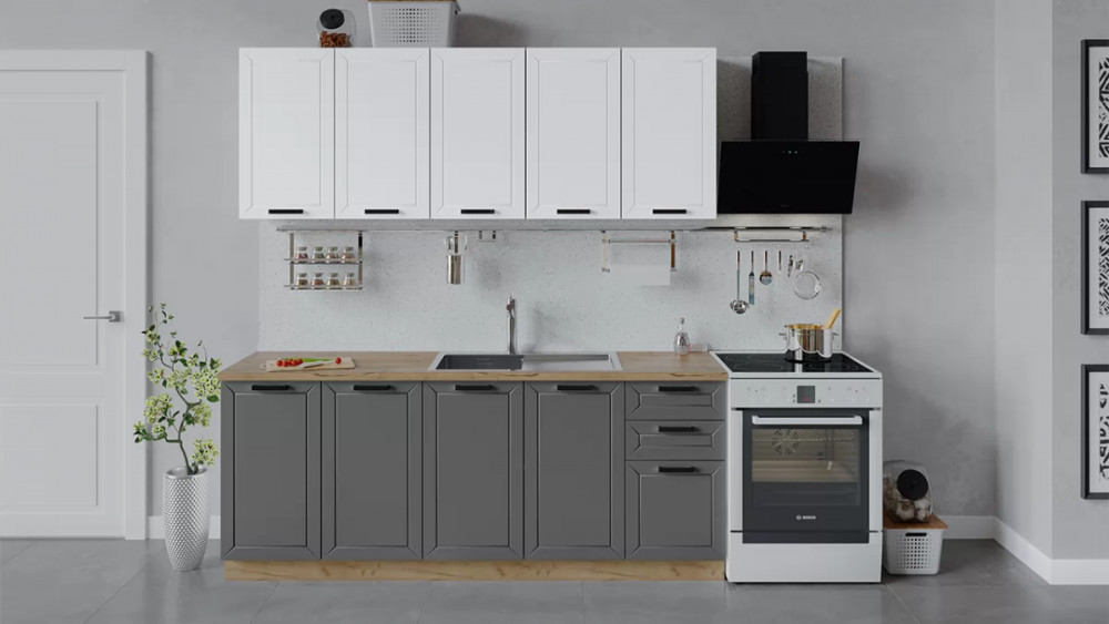В стоимость не включено: Стеновая панель, столешница, доводчики, бытовая техника, мойка, смеситель, аксессуары