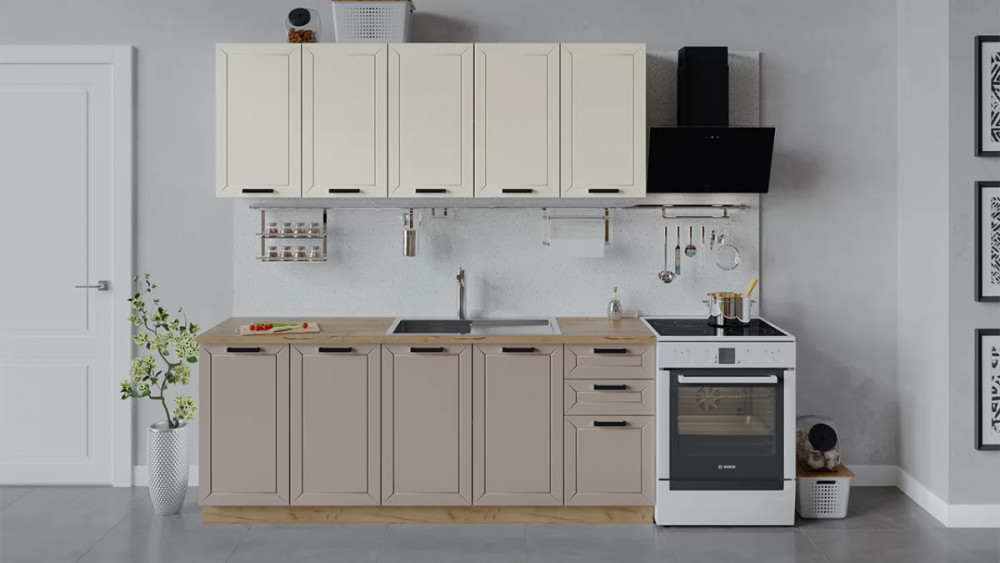 Кухонный гарнитур «Лорас» длиной 240 см Дуб крафт золотой/Холст брюле/Холст латте