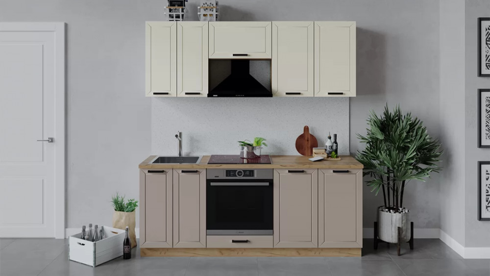 Кухонный гарнитур «Лорас» длиной 200 см Дуб крафт золотой/Холст брюле/Холст латте