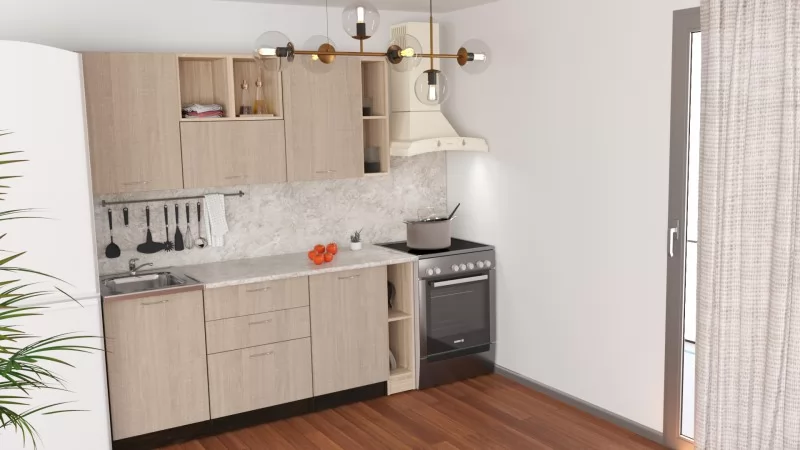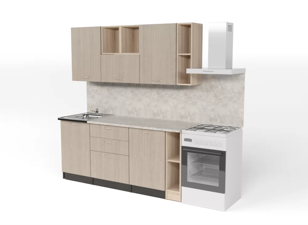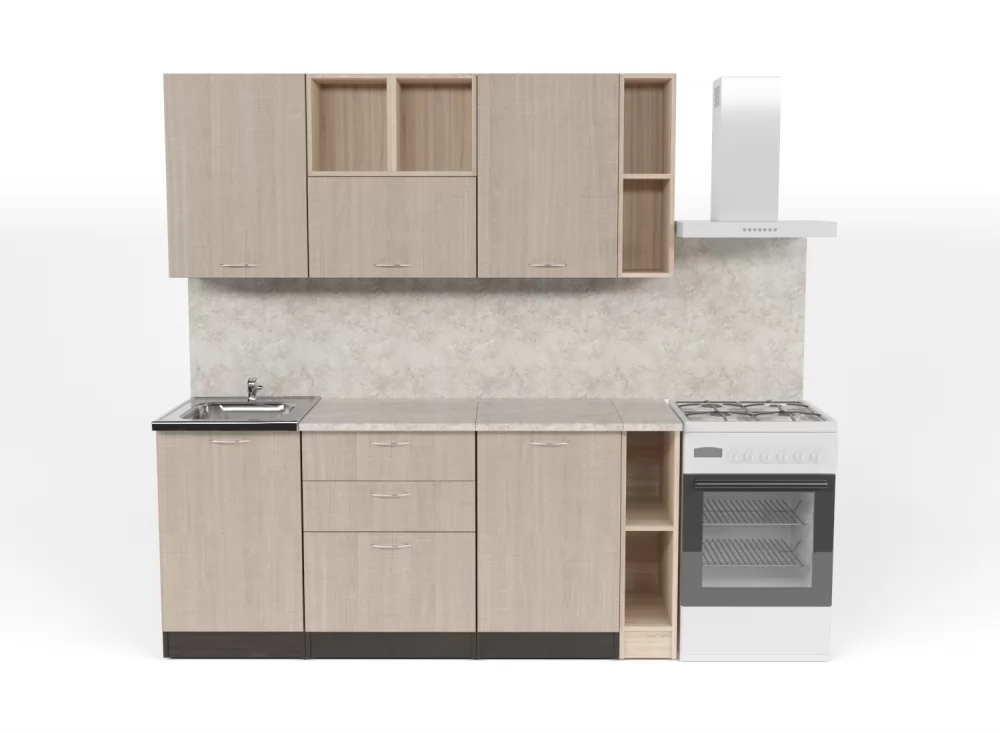Кухонный гарнитур «Белладжио» длиной 200 см Дуб Крафт золотой, Фон белый