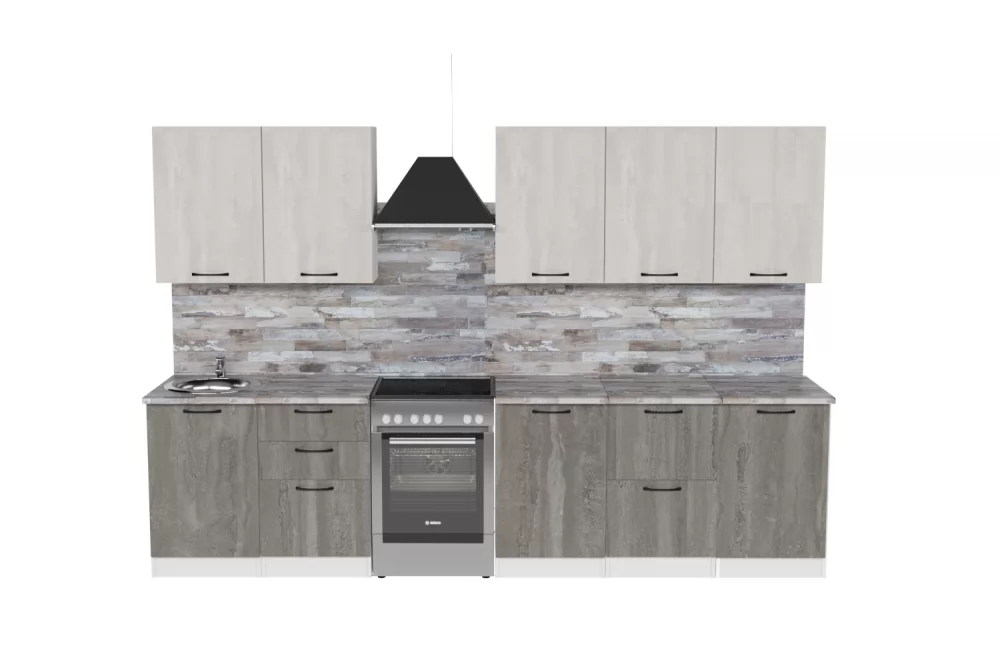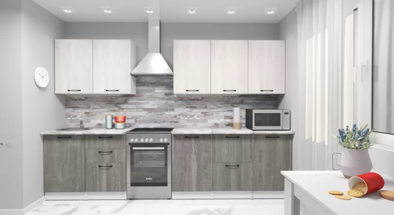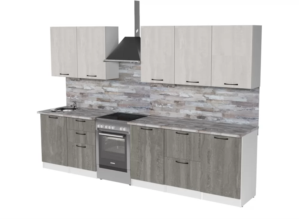 Кухонный гарнитур Нефрит Люкс из ЛДСП в модном цвете "Бетон светлый" впишется в современный дизайн интерьера. Подойдет как для частного дома, так и для небольшой квартиры. Напольные и подвесные шкафы позволят разместить всю кухонную утварь. Гарнитур состоит из набора шкафов, которые органично комбинируются между собой. Ящики, полки, навесные шкафы, тумбы и пеналы можно менять местами, создавая практичное рабочее пространство.