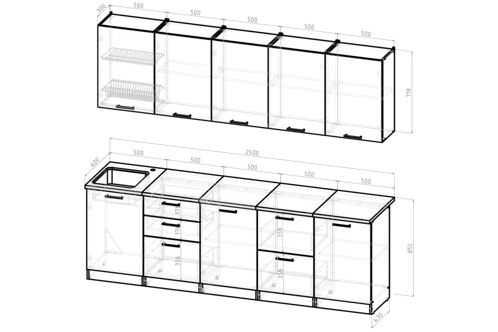 | *Ширина гарнитура | 2500 мм |
