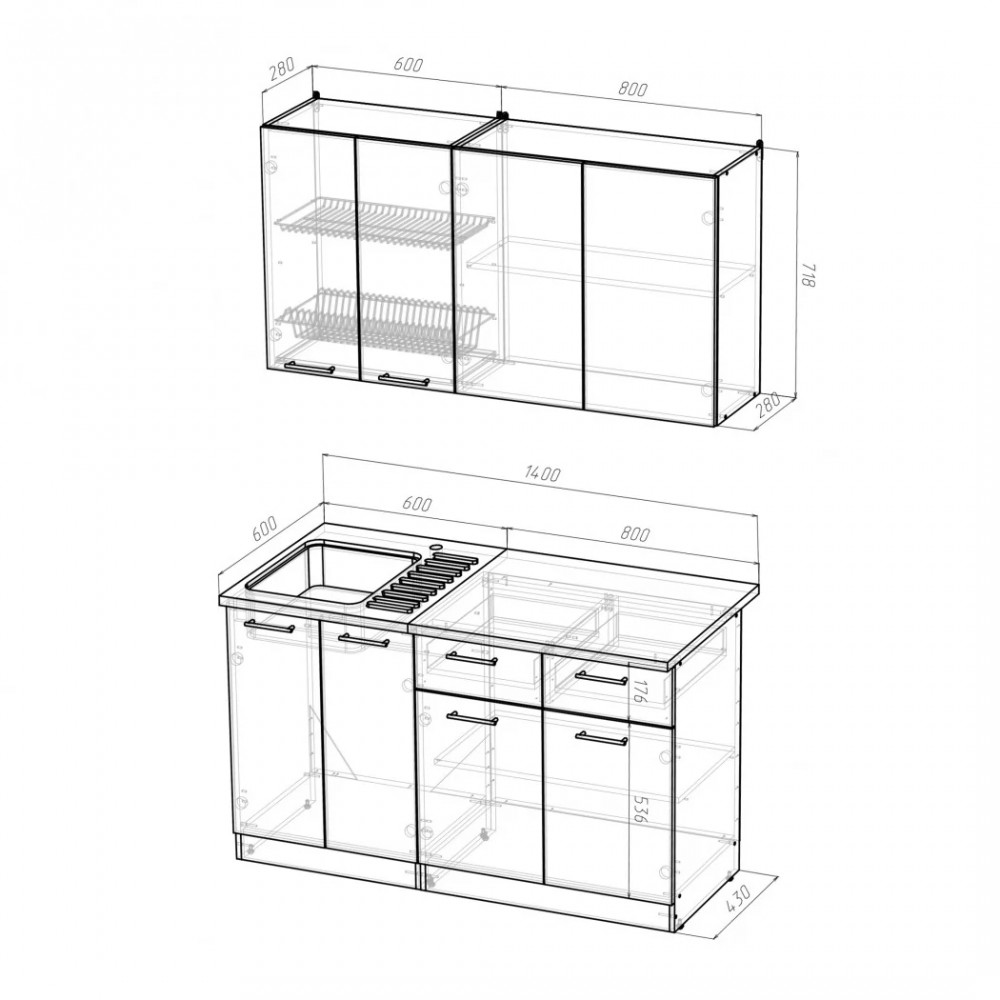 Кухонный гарнитур Жемчуг-1600 столешница 26 мм