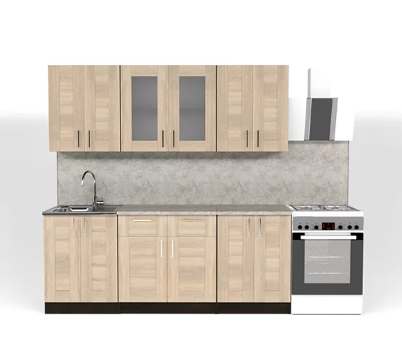 Кухонный гарнитур Ника ультра из ЛДСП в модном цвете "Квадро дуб сонома" впишется в современный дизайн интерьера. Подойдет как для частного дома, так и для небольшой квартиры. Напольные и подвесные шкафы позволят разместить всю кухонную утварь. Гарнитур состоит из набора шкафов, которые органично комбинируются между собой. Ящики, полки, навесные шкафы, тумбы и пеналы можно менять местами, создавая практичное рабочее пространство.