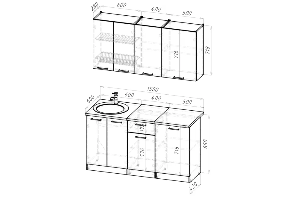 Высота шкафов, мм - 720