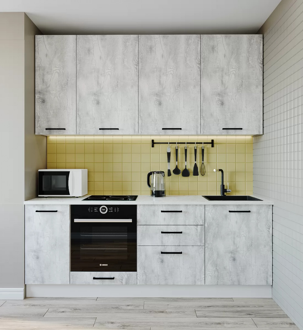 Кухонный гарнитур «Гранита» длиной 200 см Дуб крафт золотой/Бетон графит