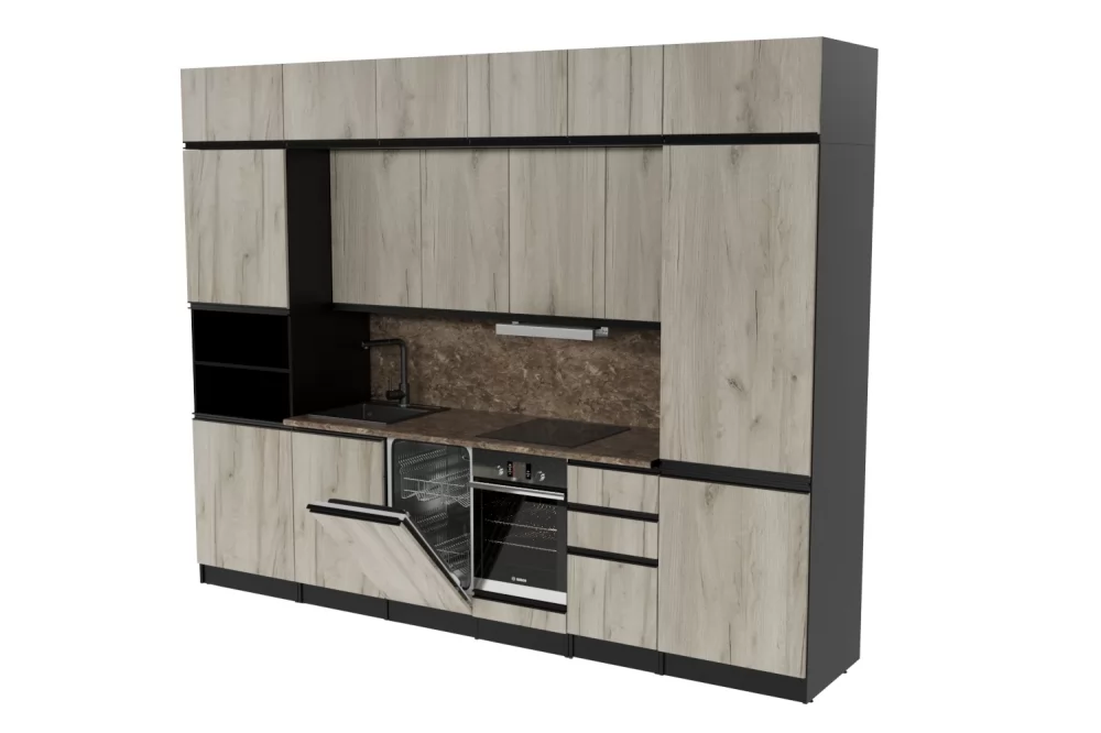 Кухонный прямой гарнитур 15, 3000 мм, Грецкий орех