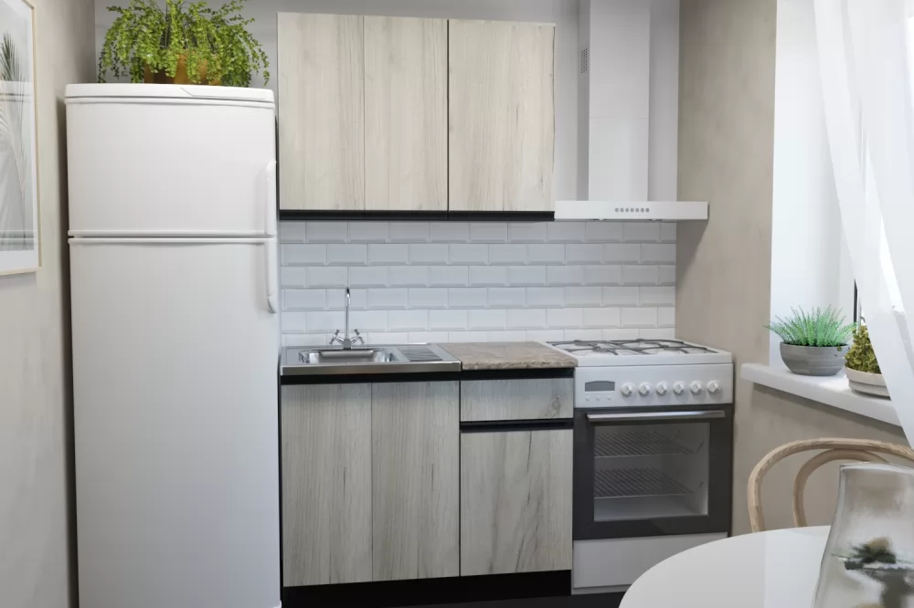 Прямые готовые кухни рациональны для маленьких квартир. При прямой планировке кухни важно предусмотреть место для холодильника и учесть его габариты. Если ваша кухня объединена с гостиной, или же настолько просторная, что позволяет сделать полноценную обеденную зону для большой семьи, то смело выбирайте линейную конфигурацию кухни.