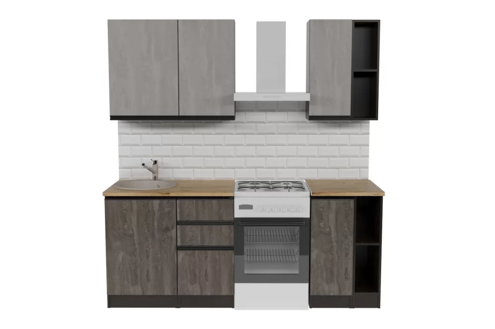 Кухонный гарнитур Симфония медиум из ЛДСП в модном цвете "Бетон светлый" впишется в современный дизайн интерьера. Подойдет как для частного дома, так и для небольшой квартиры. Напольные и подвесные шкафы позволят разместить всю кухонную утварь. Гарнитур состоит из набора шкафов, которые органично комбинируются между собой. Ящики, полки, навесные шкафы, тумбы и пеналы можно менять местами, создавая практичное рабочее пространство.