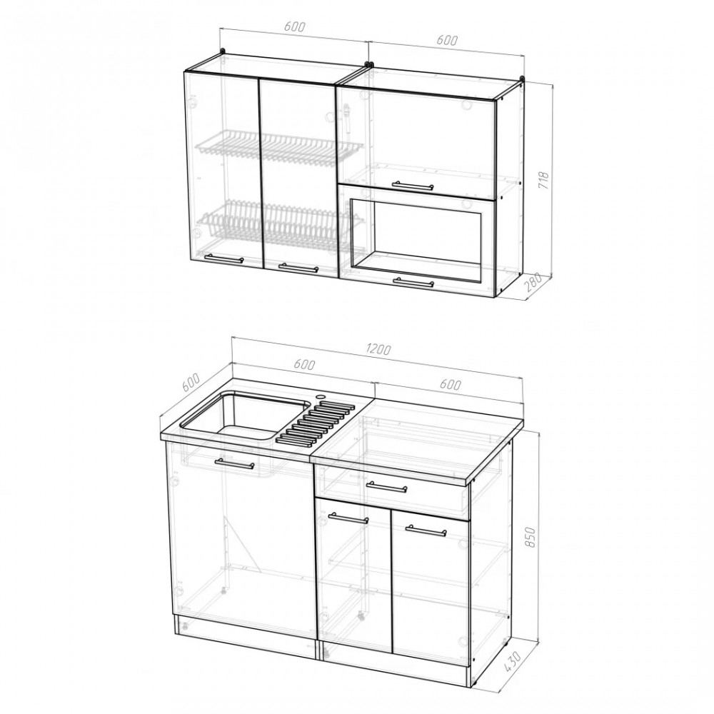Мойки, смесители и посудосушители в комплекты гарнитуров не входят.