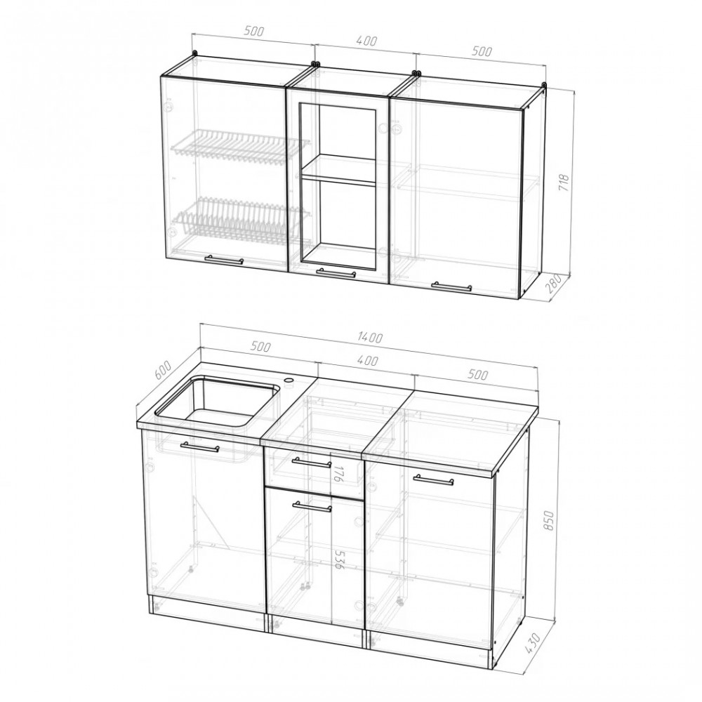 Мойки, смесители и посудосушители в комплекты гарнитуров не входят.