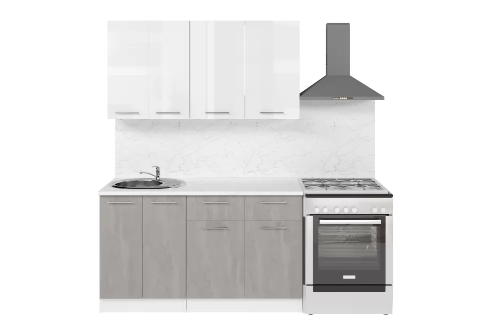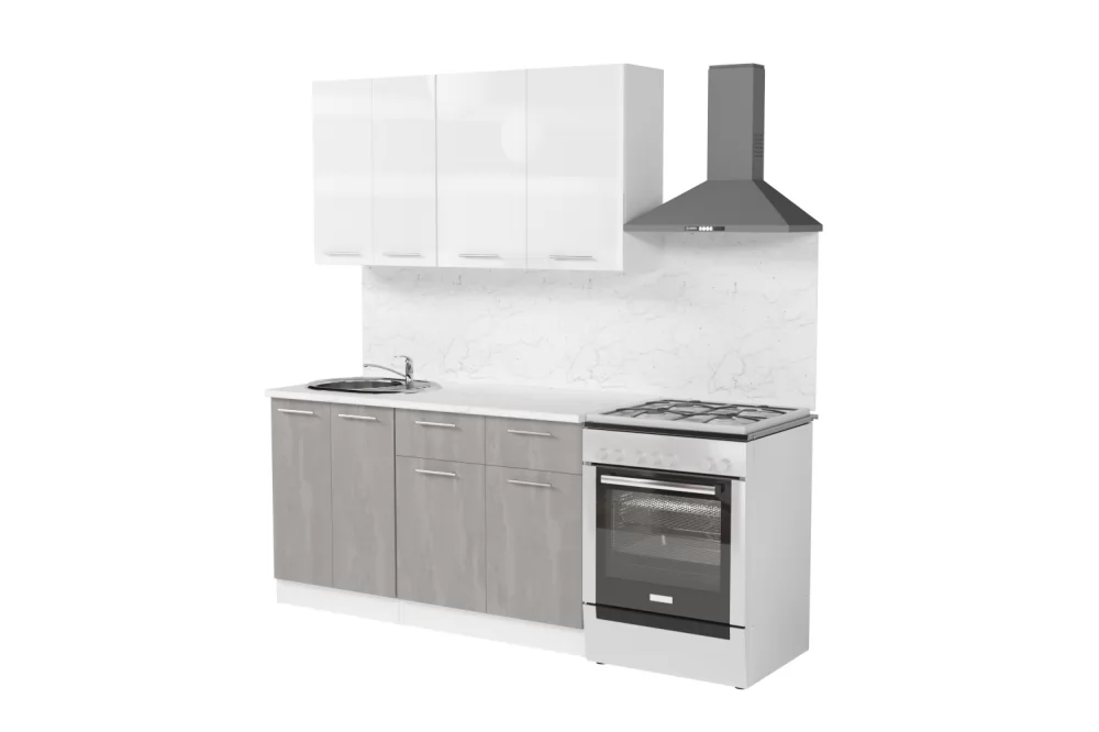 Кухонный гарнитур «Габриэлла» длиной 200 см со шкафом НБ Белый/Сноу/Титан