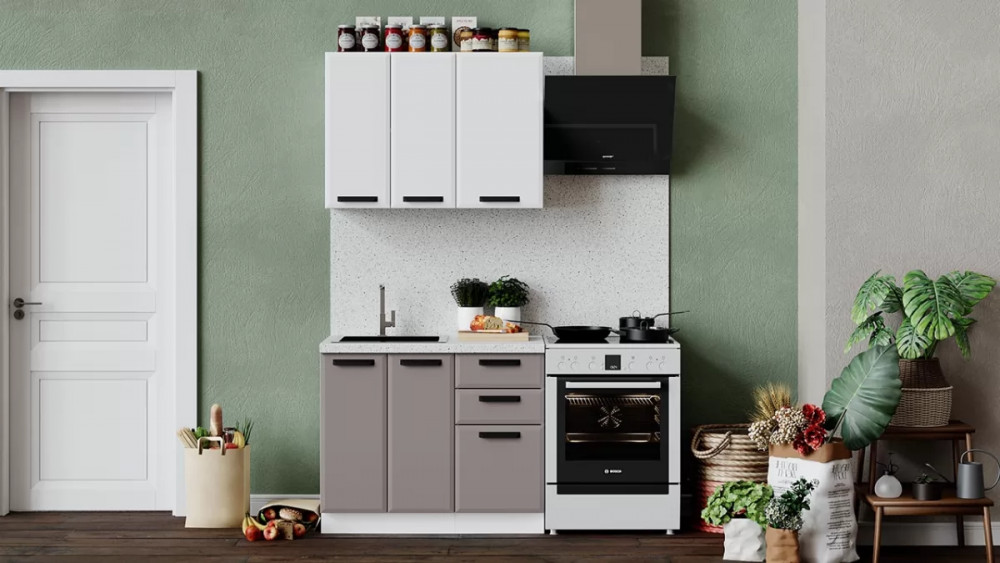 Кухонный гарнитур «Тиана» длиной 100 см Белый, Белый супермат, Мокко супермат