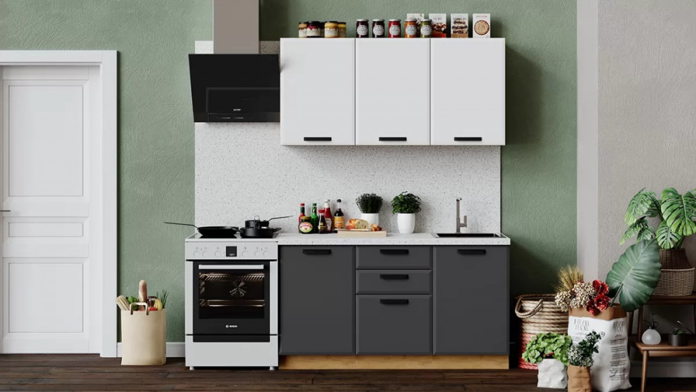 Габаритный размер готового набора модулей с учетом газовой плиты на 60 см: 2 100