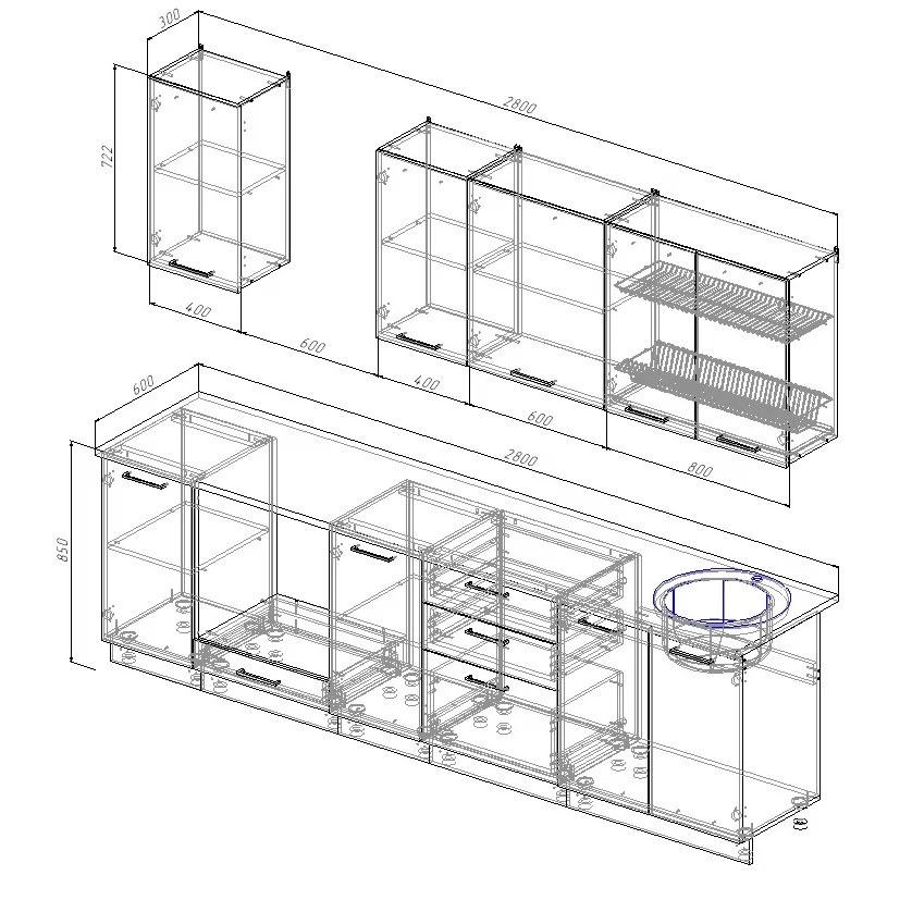 | Ширина гарнитура | 2800 мм |