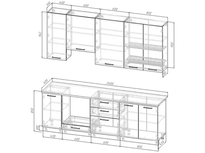 Высота верхних модулей (мм): 950