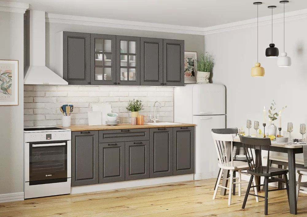 Кухонный гарнитур Вегас Африканское Лапачо графит 2400 мм