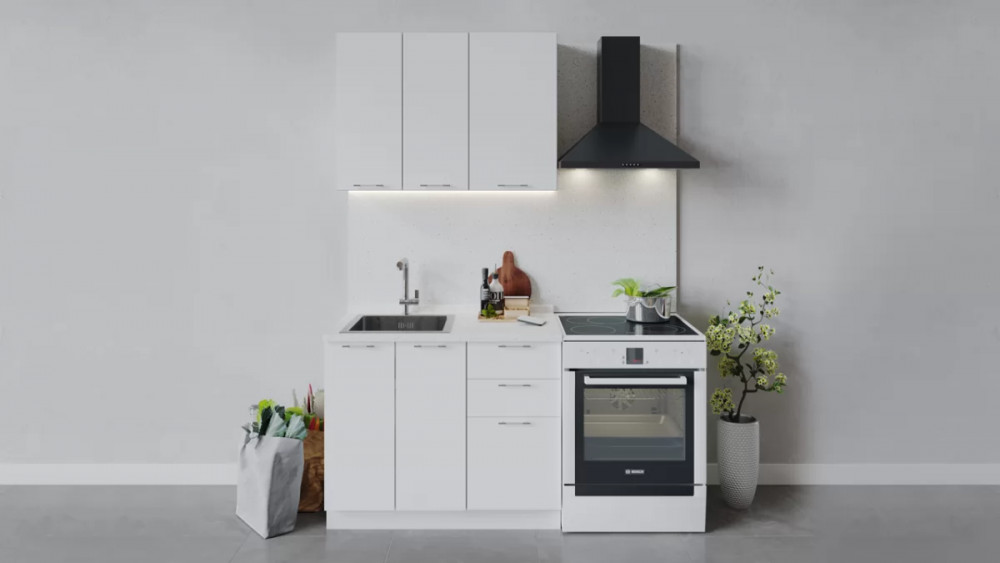 Кухонный гарнитур «Кимберли» длиной 200 см со шкафом НБ Белый, Сноу, Муссон