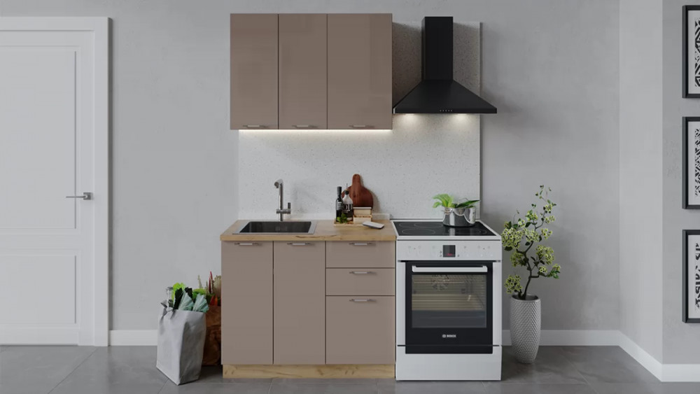 Кухонный гарнитур «Весна» длиной 150 см Дуб крафт золотой/Кофе с молоком