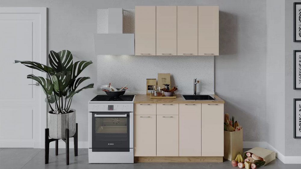 Кухонный гарнитур «Весна» длиной 180 см Дуб крафт золотой/Ваниль глянец