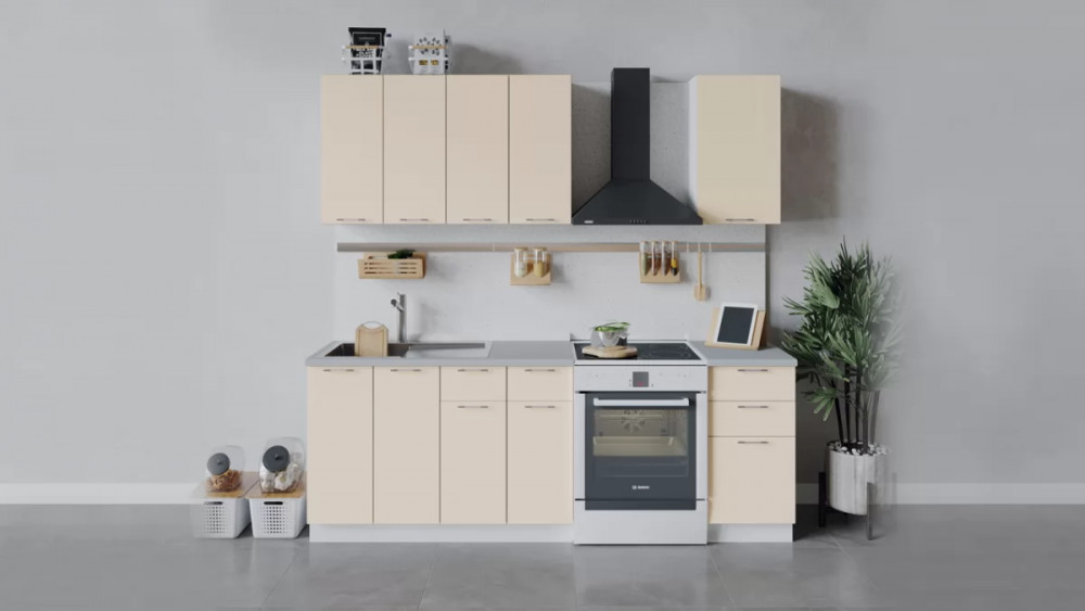 Кухонный гарнитур «Белладжио» длиной 160 см Белый, Софт панакота, Софт капучино