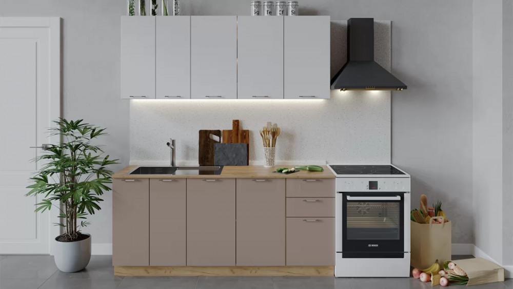 Модульная кухня «Весна» Дуб крафт золотой/Ваниль глянец/Кофе с молоком