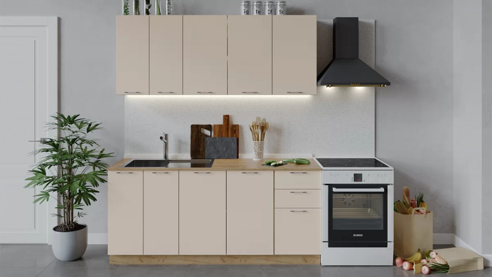 Модульная кухня «Весна» Дуб крафт золотой/Ваниль глянец/Кофе с молоком