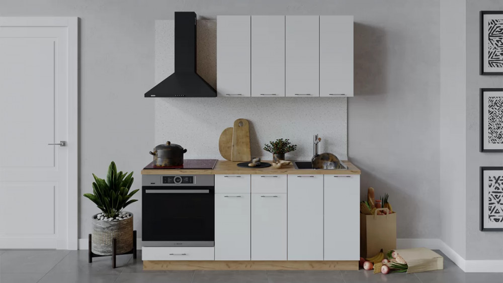 Кухонный гарнитур «Весна» длиной 180 см Дуб крафт золотой/Белый глянец